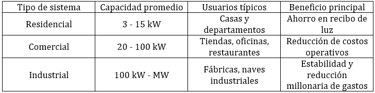 Dirigidos a negocios como tiendas, restaurantes, oficinas y pequeños comercios. Cubren consumos mayores derivados de equipos de refrigeración, aire acondicionado y equipos electrónicos. La capacidad de estos sistemas suele ir de 20 kW a 100 kW.